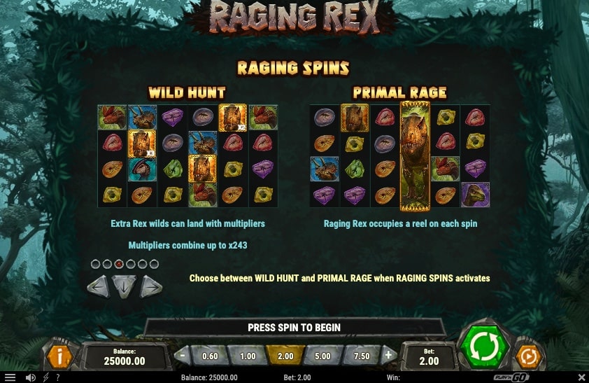 Raging Rex offers four different bonus features to keep players well entertained.